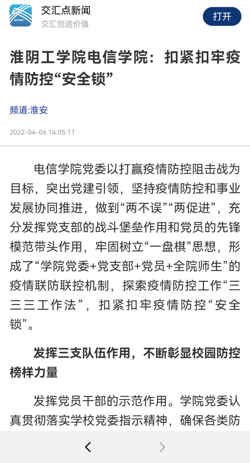 发挥思政工作队伍的骨干作用。各党支部实施网格化动态管理,做到信息摸排准确、疫情防控科学,加强人文关怀和生活关心、情感关爱,深入员工宿舍,撰写多篇导向积极的网络文章,注重充分发挥网络思政的育人功能,倡导同学们警惕松劲心态,增强抗疫信心,以持之以恒的自律积极应对各种变化和困难。