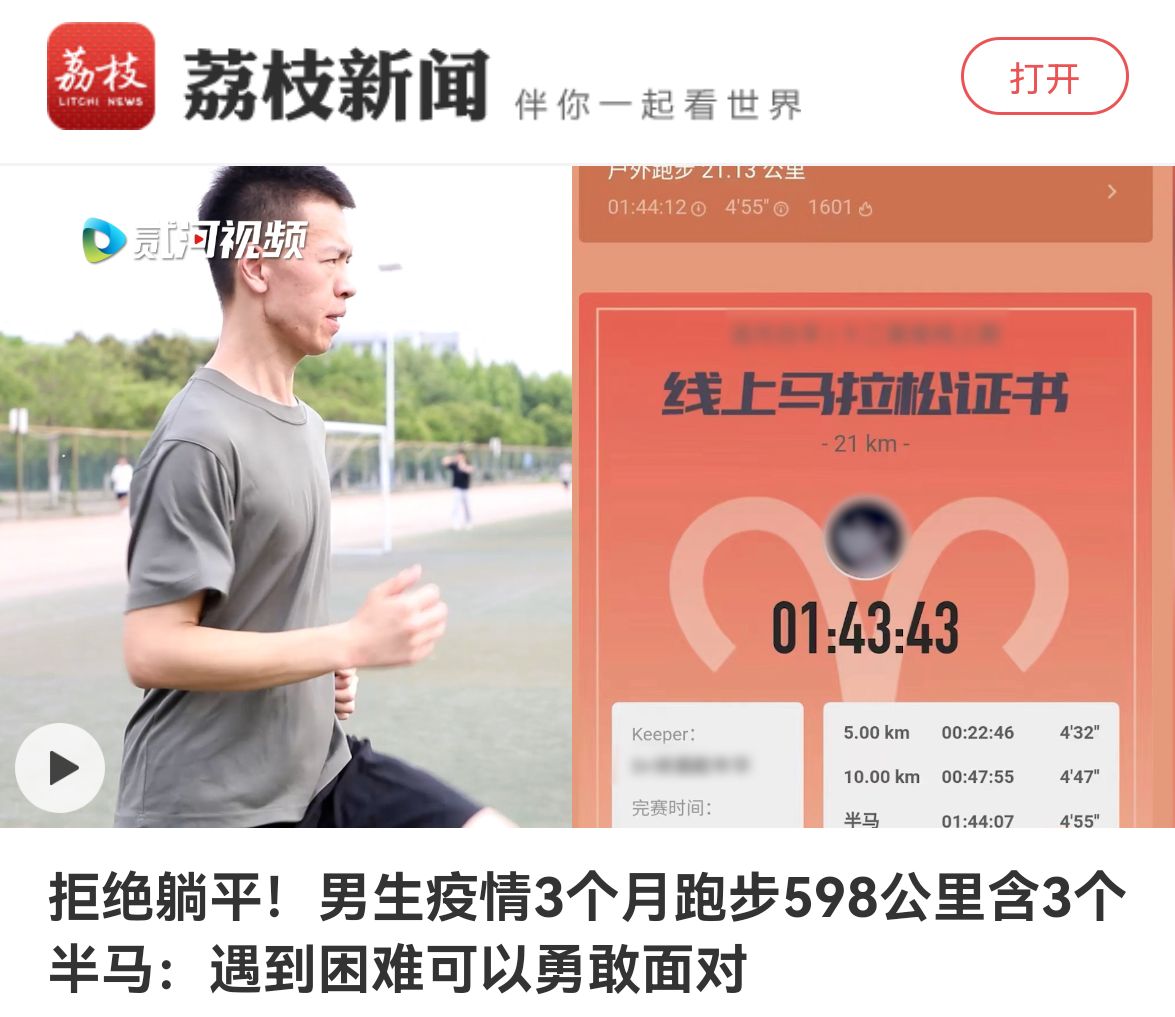 荔枝新闻|拒绝躺平!男生疫情3个月跑步598公里含3个半马:遇到困难可以勇敢面对