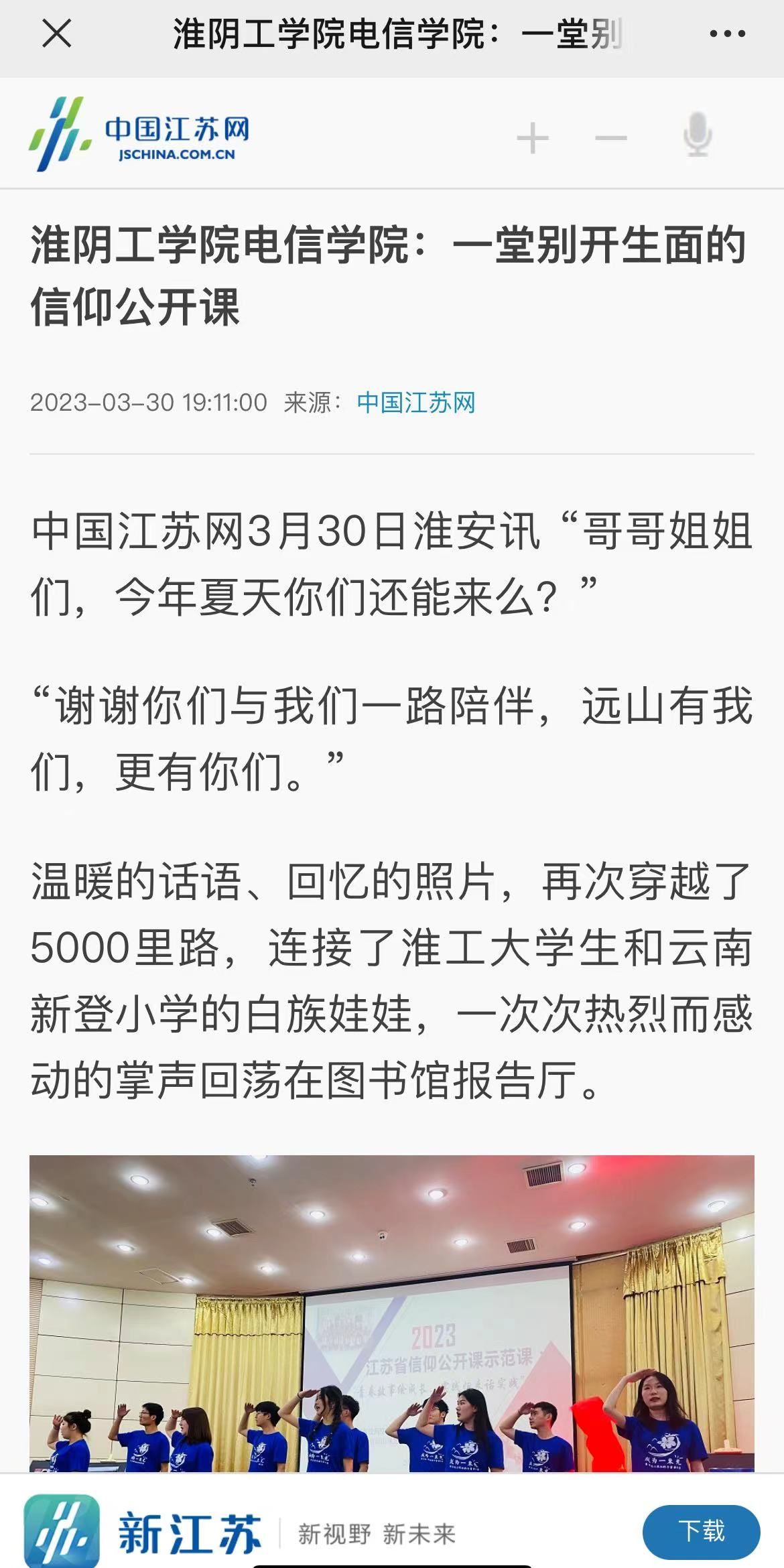 江苏省信仰公开课示范课“青春故事绘成长,实践归来话实践”于3月29日晚上7点如约开讲。淮阴工公司党委宣传部副部长、新闻中心主任李博澜,团委副书记蔡熙文,江苏电子信息职业技术公司商公司党总支副书记陈云子,云顶国际yd333公司党委副书记王海云,来自远山深处的力量支教团校外指导老师章可心,第四季支教成员高权及云顶国际yd333辅导员,第八季支教团、第九季支教团、2022级同学参加本次活动。本课程由江苏省高校网络思政名师工作室负责人、云顶国际yd333公司党委书记韩飞主讲。