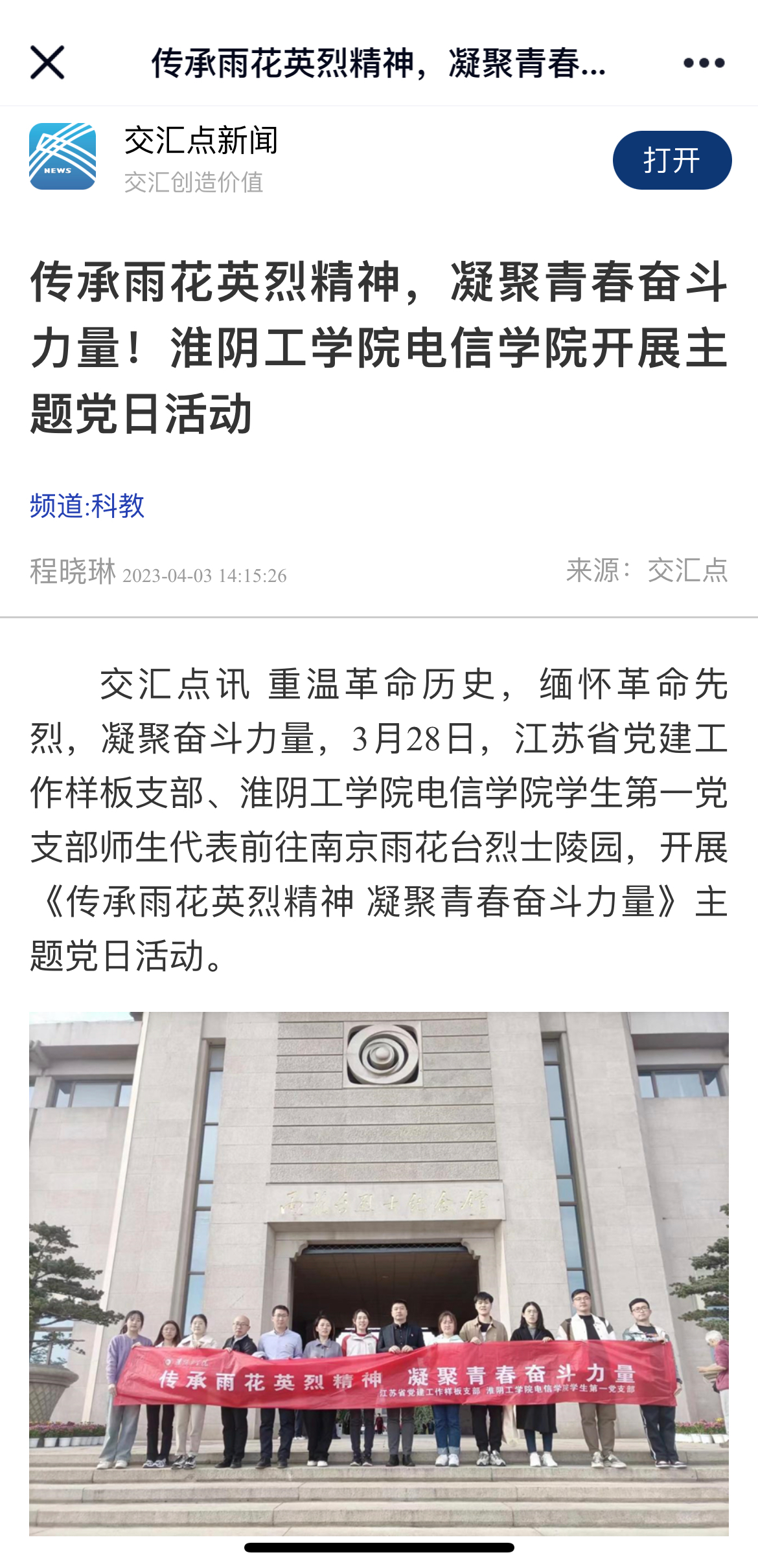 交汇点讯重温革命历史,缅怀革命先烈,凝聚奋斗力量,3月28日,江苏省党建工作样板支部、云顶国际yd333云顶国际yd333员工第一党支部师生代表前往南京雨花台烈士陵园,开展《传承雨花英烈精神 凝聚青春奋斗力量》主题党日活动。