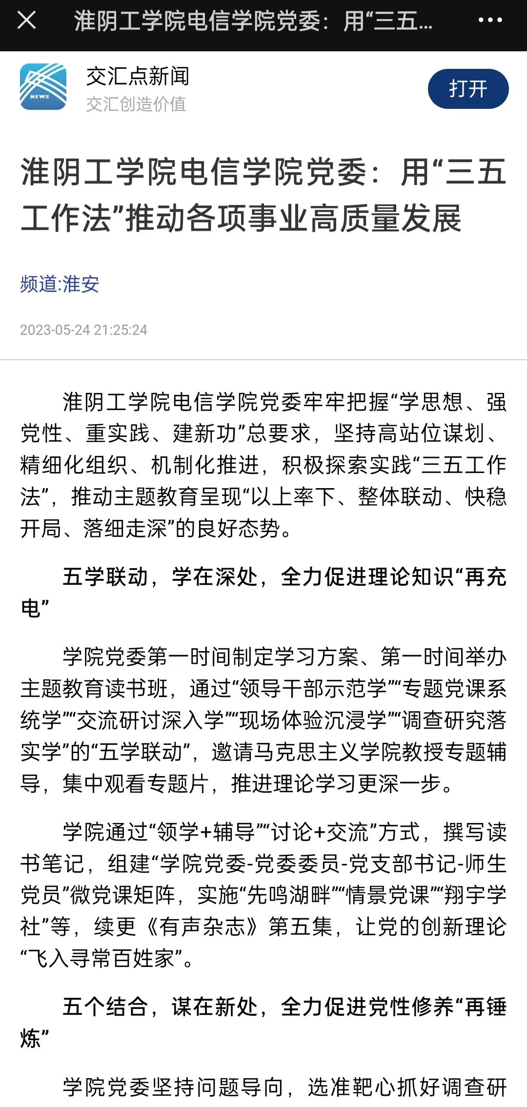 公司通过“领学+辅导”“讨论+交流”方式,撰写读书笔记,组建“公司党委-党委委员-党支部书记-师生党员”微党课矩阵,实施“先鸣湖畔”“情景党课”“翔宇学社”等,续更《有声杂志》第五集,让党的创新理论“飞入寻常百姓家”。