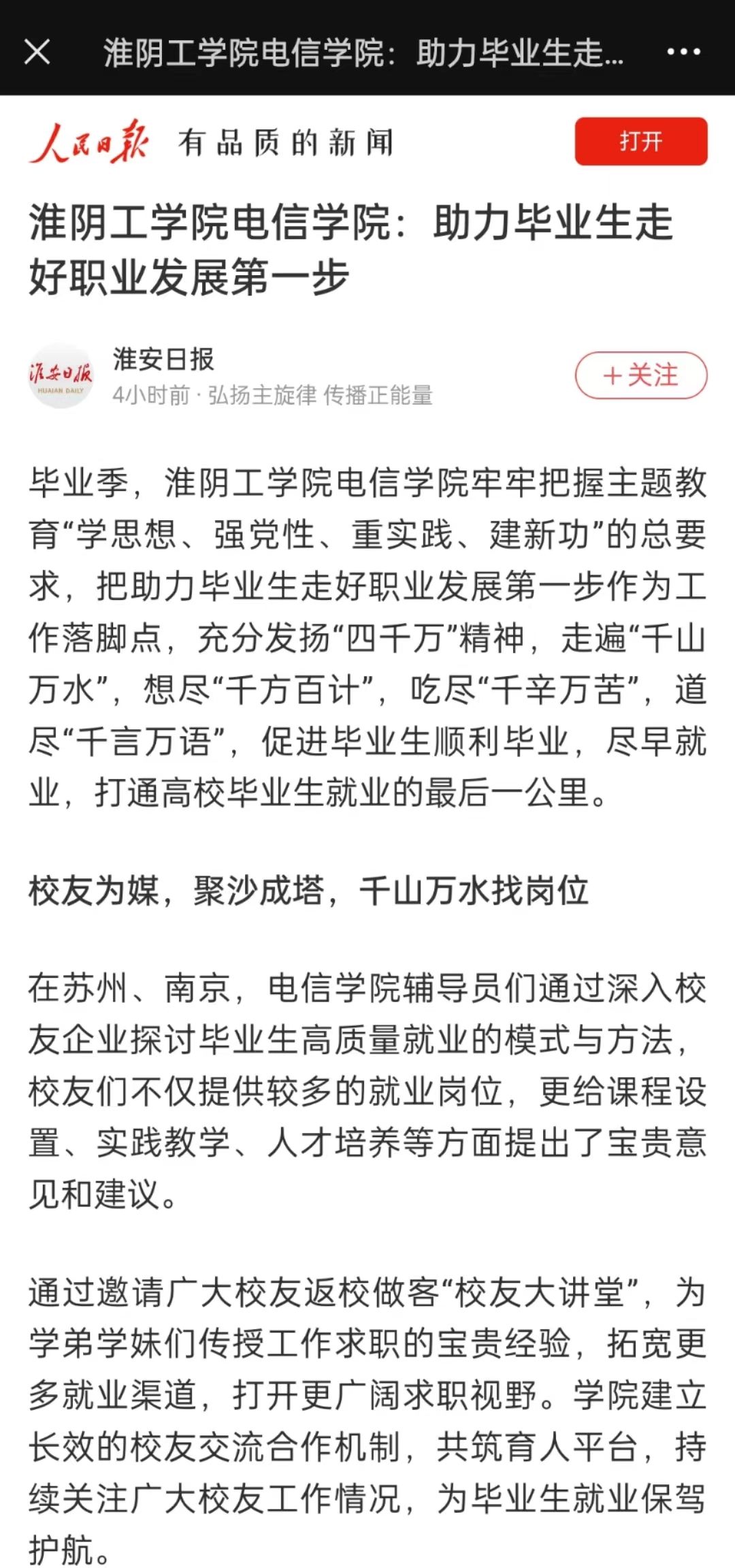 公司走访近30家单位,开展“职等你来”电信专业专场招聘会22场,通过员工工作群、毕业生QQ群发布就业信息100余条。