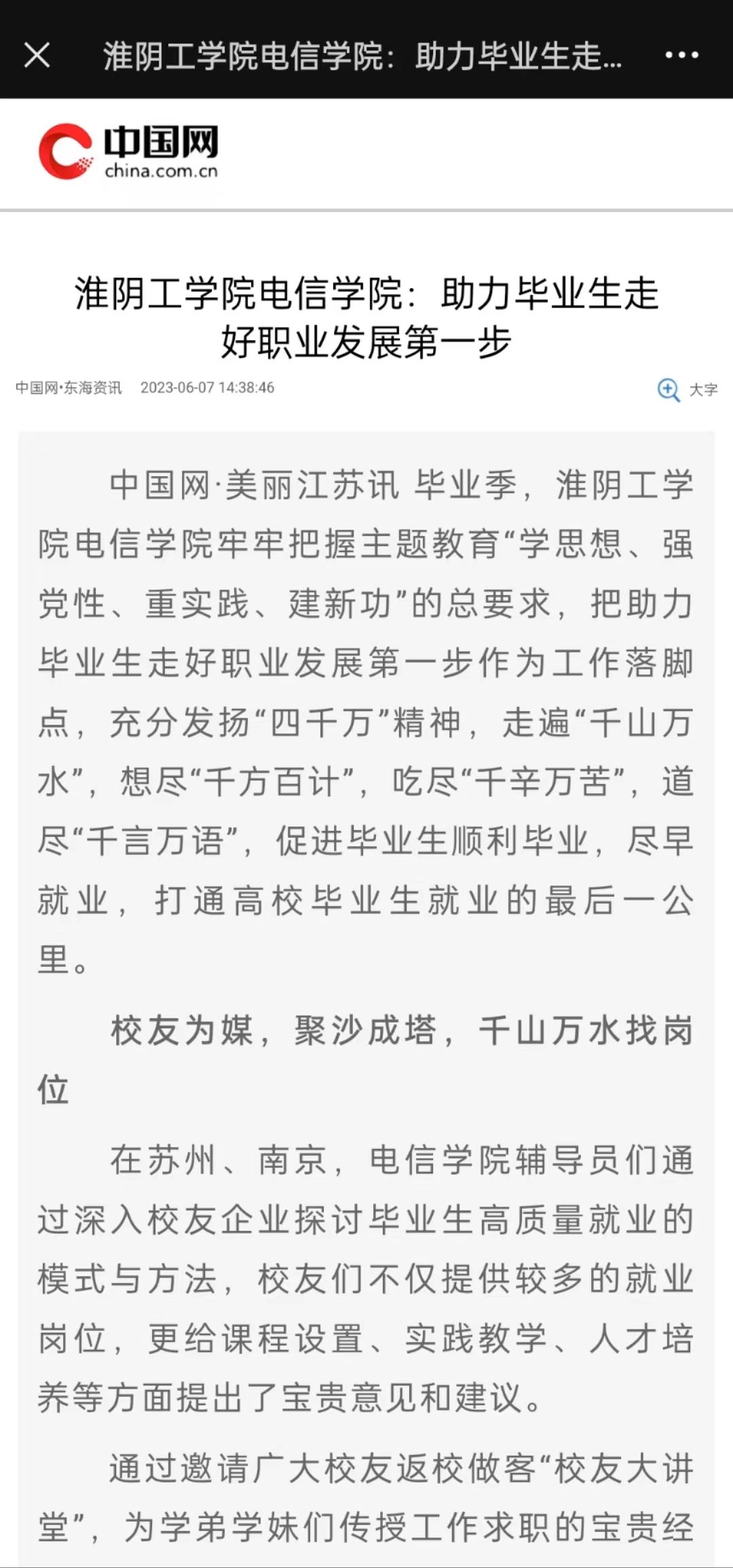 公司走访近30家单位,开展“职等你来”电信专业专场招聘会22场,通过员工工作群、毕业生QQ群发布就业信息100余条。