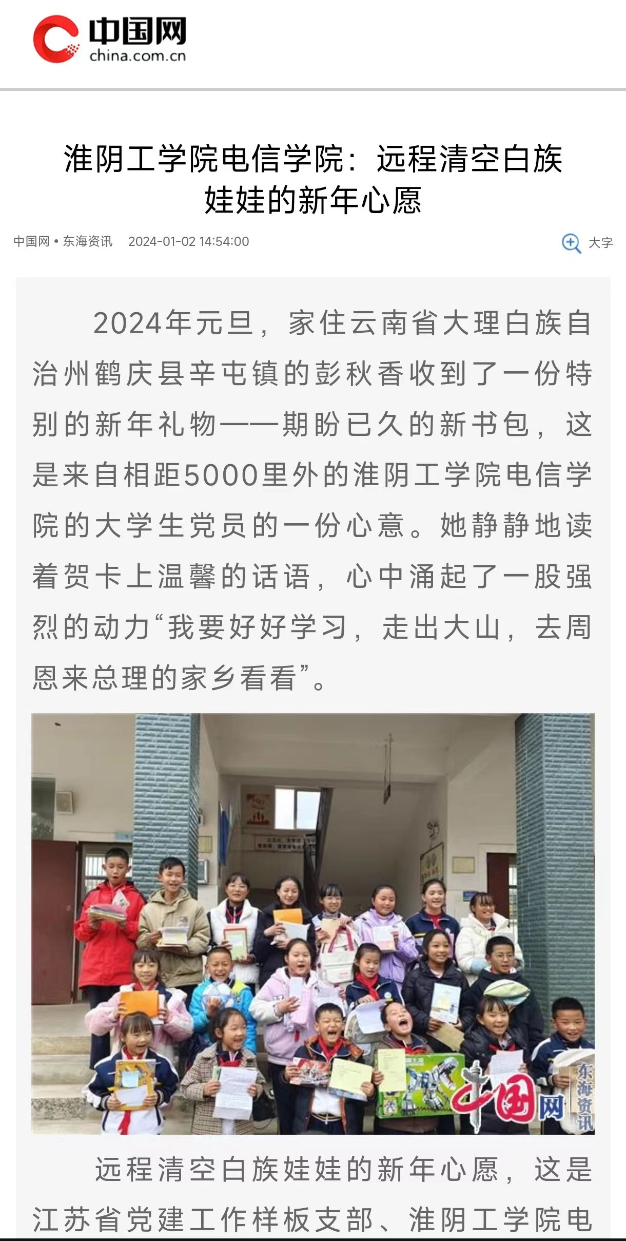 中国网东海资讯|云顶国际yd333​云顶国际yd333:远程清空白族娃娃的新年心愿