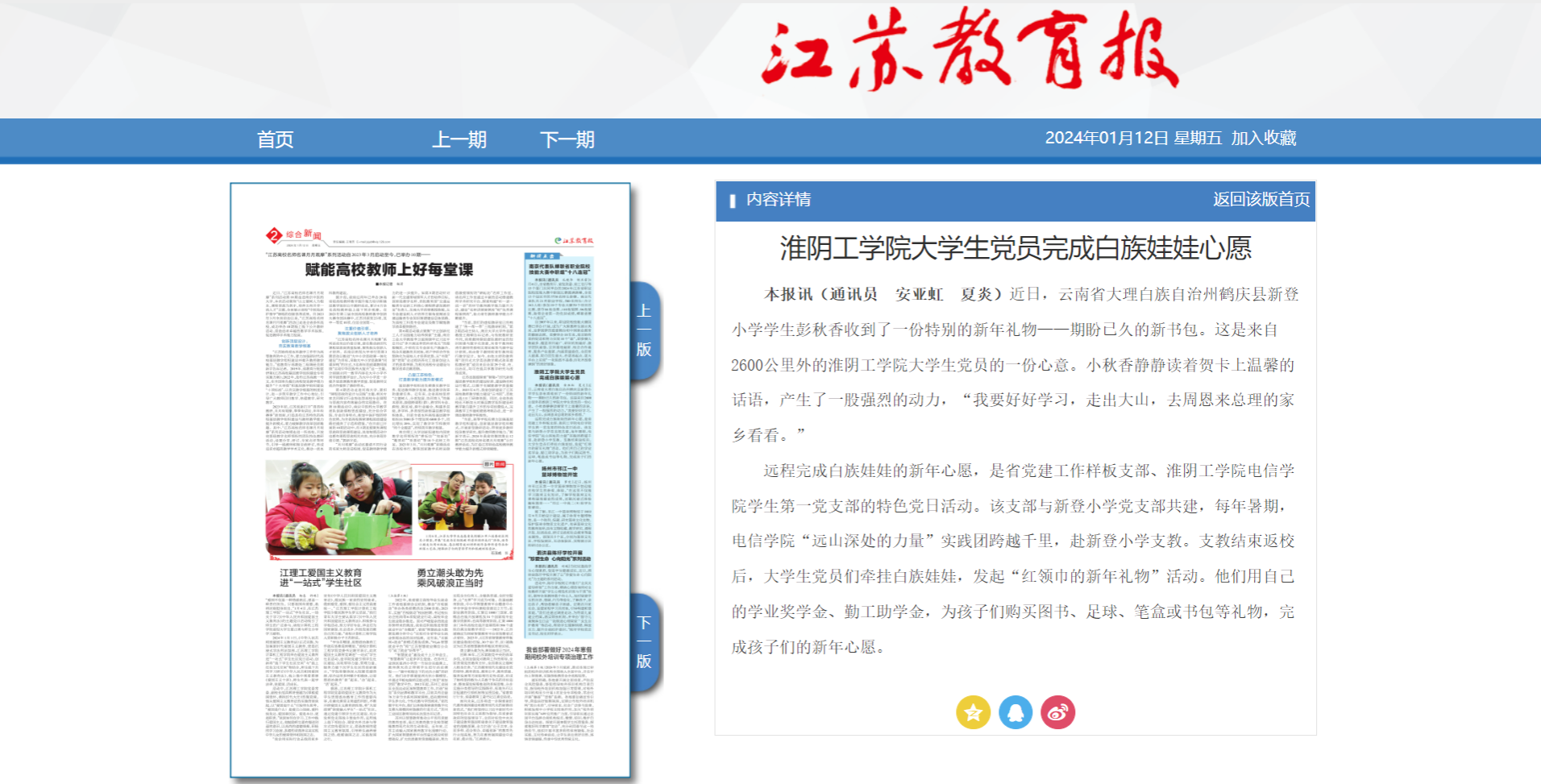 远程完成白族娃娃的新年心愿,是省党建工作样板支部、云顶国际yd333云顶国际yd333员工第一党支部的特色党日活动。该支部与新登小学党支部共建,每年暑期,云顶国际yd333“远山深处的力量”实践团跨越千里,赴新登小学支教。支教结束返校后,老员工党员们牵挂白族娃娃,发起“红领巾的新年礼物”活动。他们用自己的学业奖学金、勤工助学金,为孩子们购买图书、足球、笔盒或书包等礼物,完成孩子们的新年心愿。