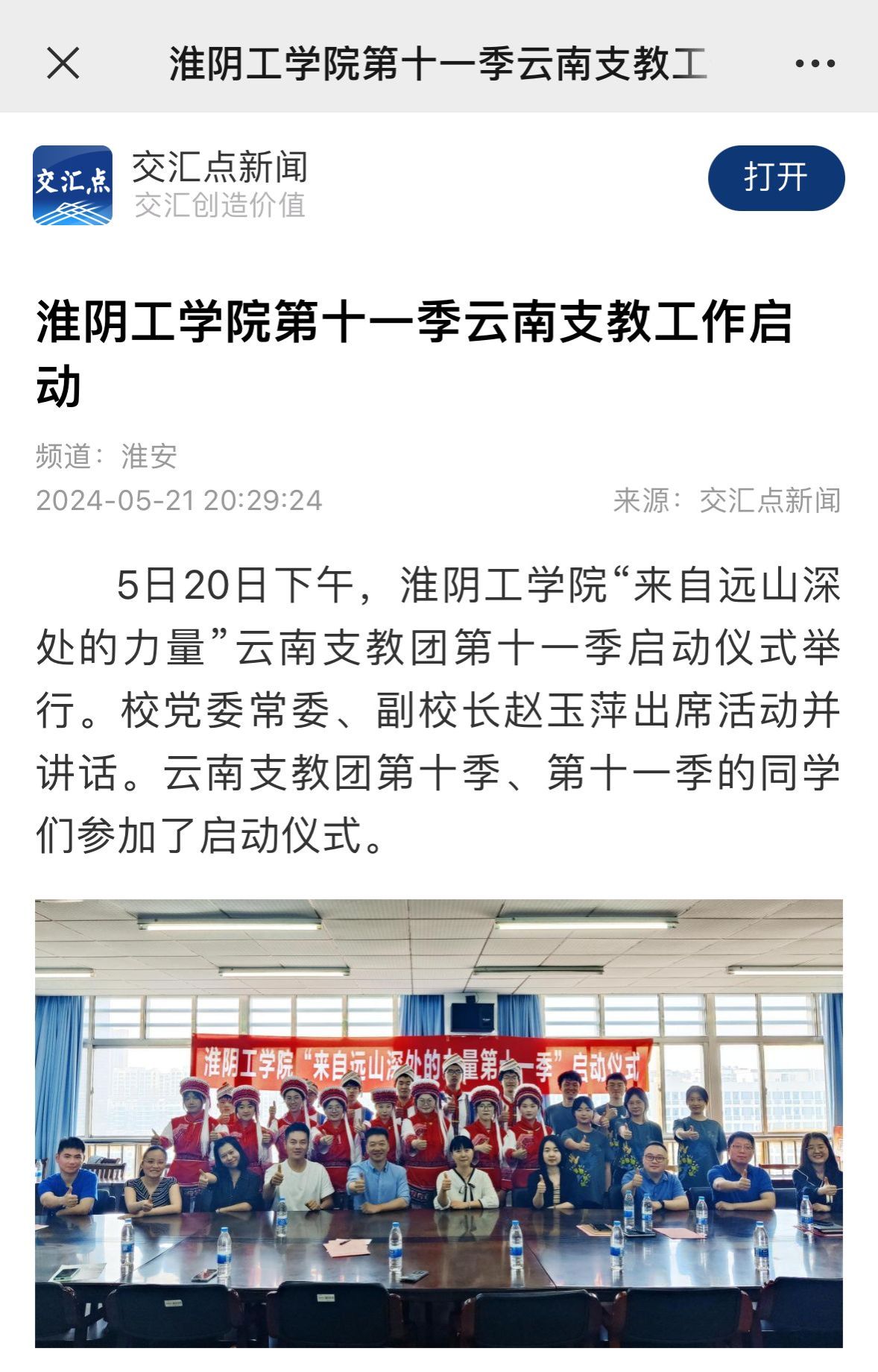 赵玉萍对第十一季云南支教团的同学们提出三点希望:一是刻画青春模样,敢于、善于、乐于“自找苦吃”,展现青春作为、彰显青春风采、贡献青春力量,奋力书写为中国式现代化挺膺担当的青春篇章。二是追逐青春梦想,坚持理论与实践相结合,近距离了解山区教育发展现状,从“旁观者”变成实实在在的“参与者”,厚植爱国情怀,练就过硬本领,用实际行动在祖国需要的地方努力奋斗。三是树立青春志向,远山支教活动是课堂知识在现实中的真实写照,继续帮助山村小学的孩子们接触到先进的教育理念和方法,让白族娃娃看到外面的世界,更让他们坚定信心,走向更广阔的世界。