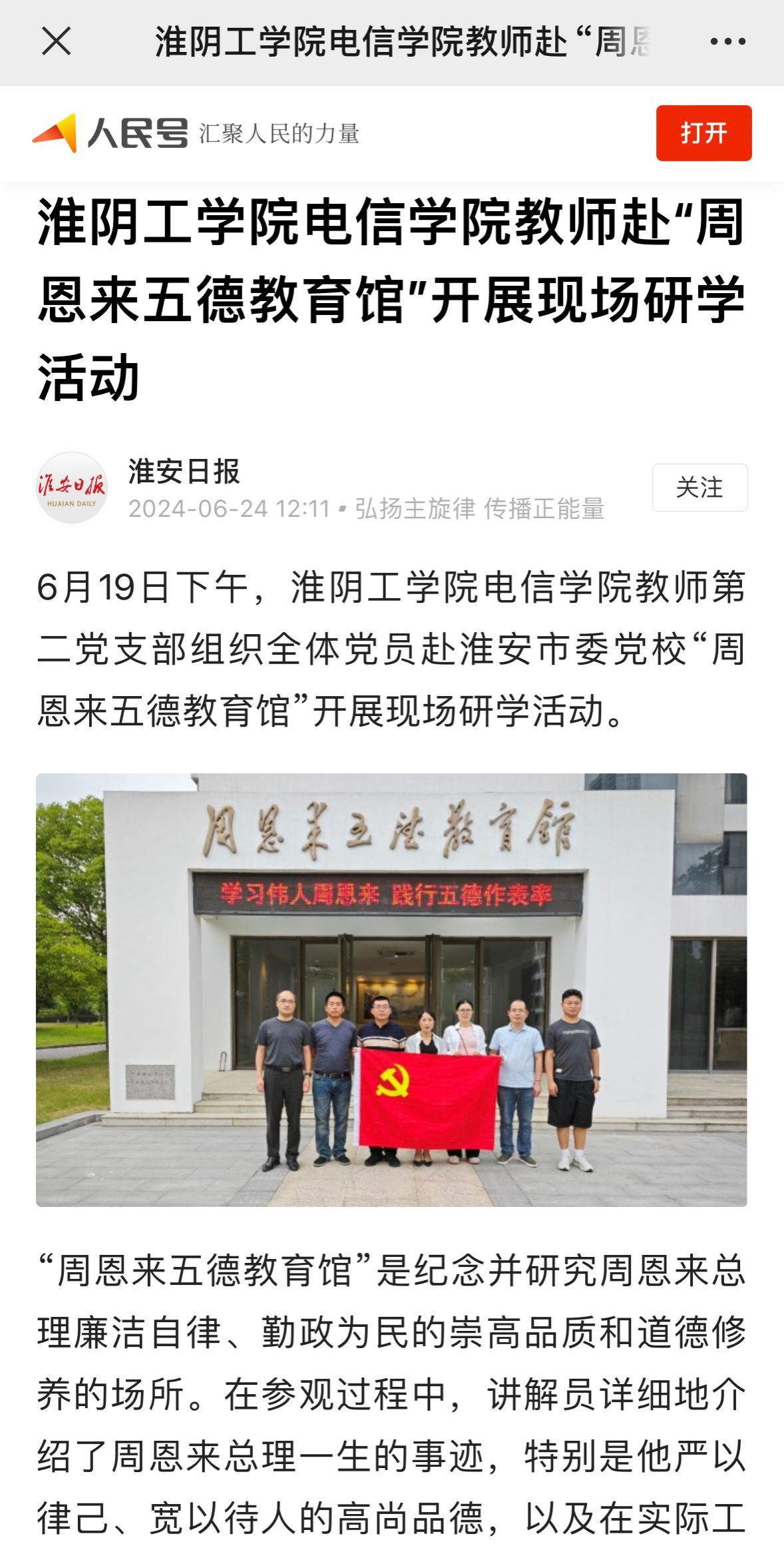 6月19日下午,云顶国际yd333云顶国际yd333教师第二党支部组织全体党员赴淮安市委党校“周恩来五德教育馆”开展现场研学活动。