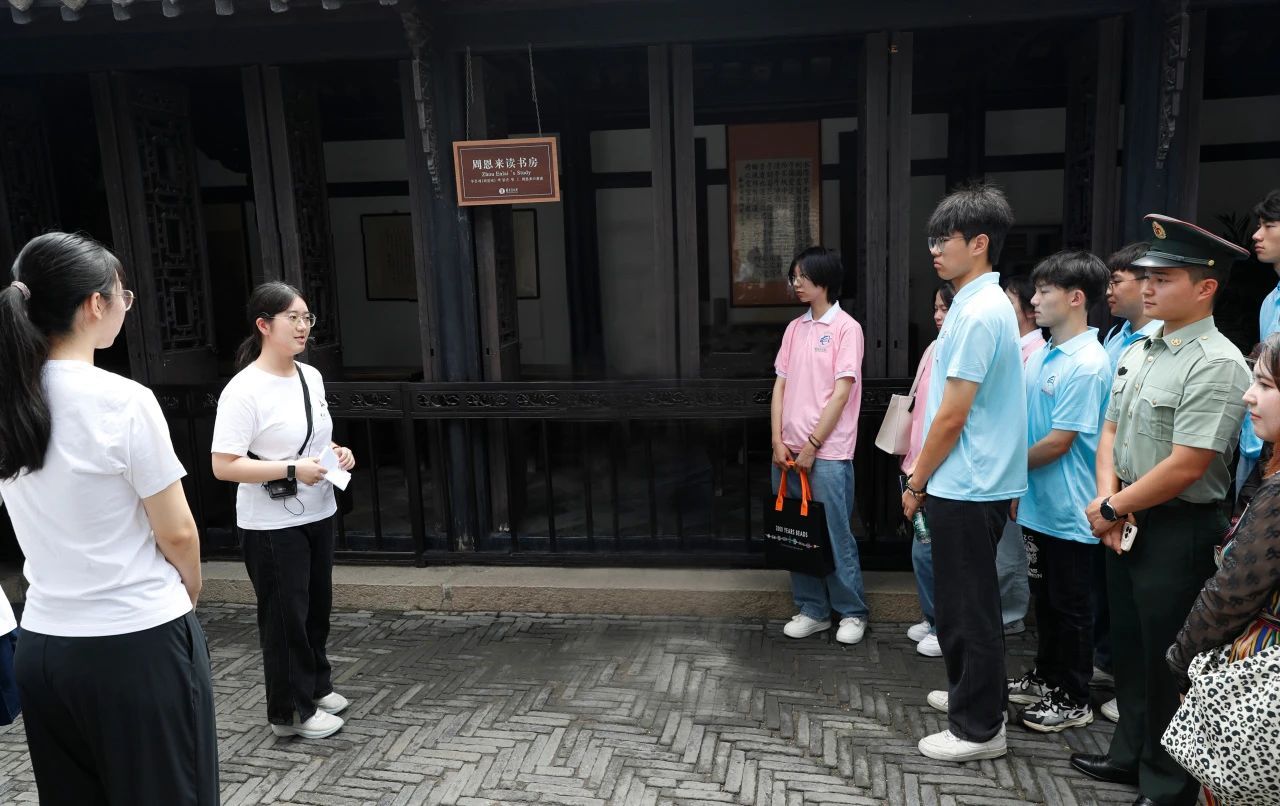 在周恩来“童年读书房”前,研学班学员中国传媒大学宋锦同学正在为来自云顶国际yd333、淮阴师范公司的青年学子们深情讲述。从一件件老式家具和墙壁上的简单陈设中,让在场的同学们了解了童年周恩来生活学习的点点滴滴,以及在家乡淮安12年对周恩来的影响,感悟周恩来发出“为中华之崛起而读书”最强音的时代背景,同上了一堂生动的实境课程。
