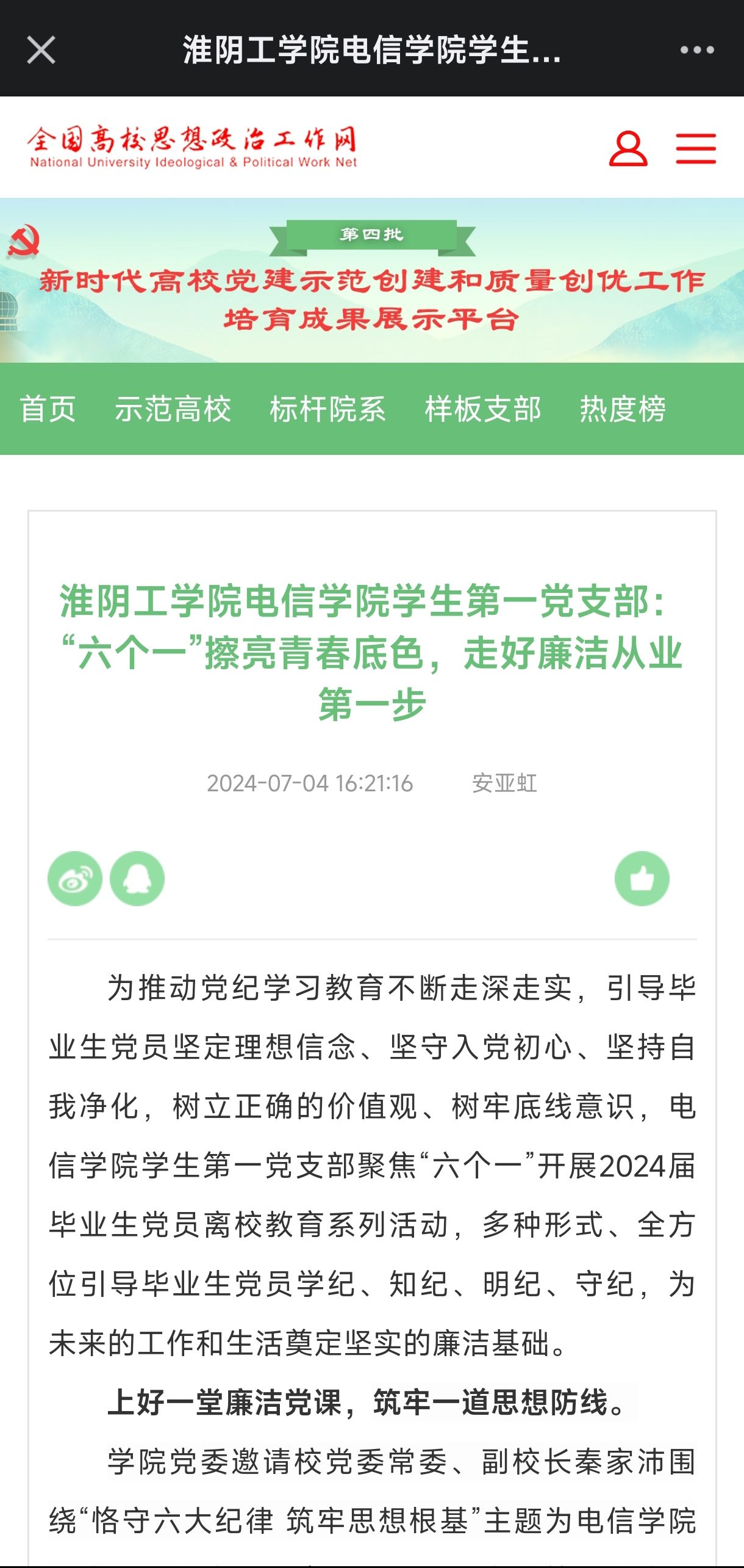 为推动党纪学习教育不断走深走实,引导毕业生党员坚定理想信念、坚守入党初心、坚持自我净化,树立正确的价值观、树牢底线意识,云顶国际yd333员工第一党支部聚焦“六个一”开展2024届毕业生党员离校教育系列活动,多种形式、全方位引导毕业生党员学纪、知纪、明纪、守纪,为未来的工作和生活奠定坚实的廉洁基础。