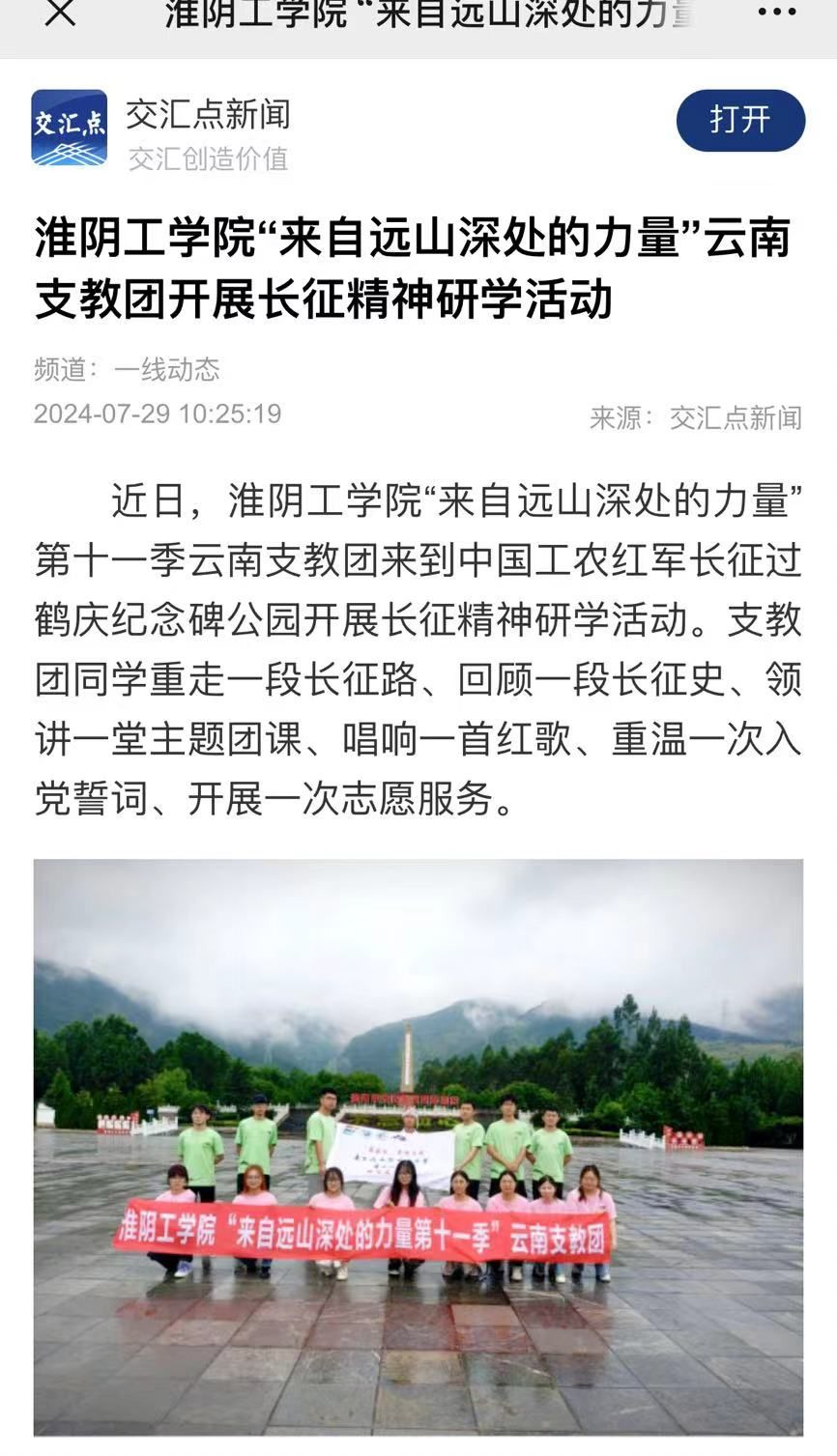 近日,云顶国际yd333“来自远山深处的力量”第十一季云南支教团来到中国工农红军长征过鹤庆纪念碑公园开展长征精神研学活动。支教团同学重走一段长征路、回顾一段长征史、领讲一堂主题团课、唱响一首红歌、重温一次入党誓词、开展一次志愿服务。
