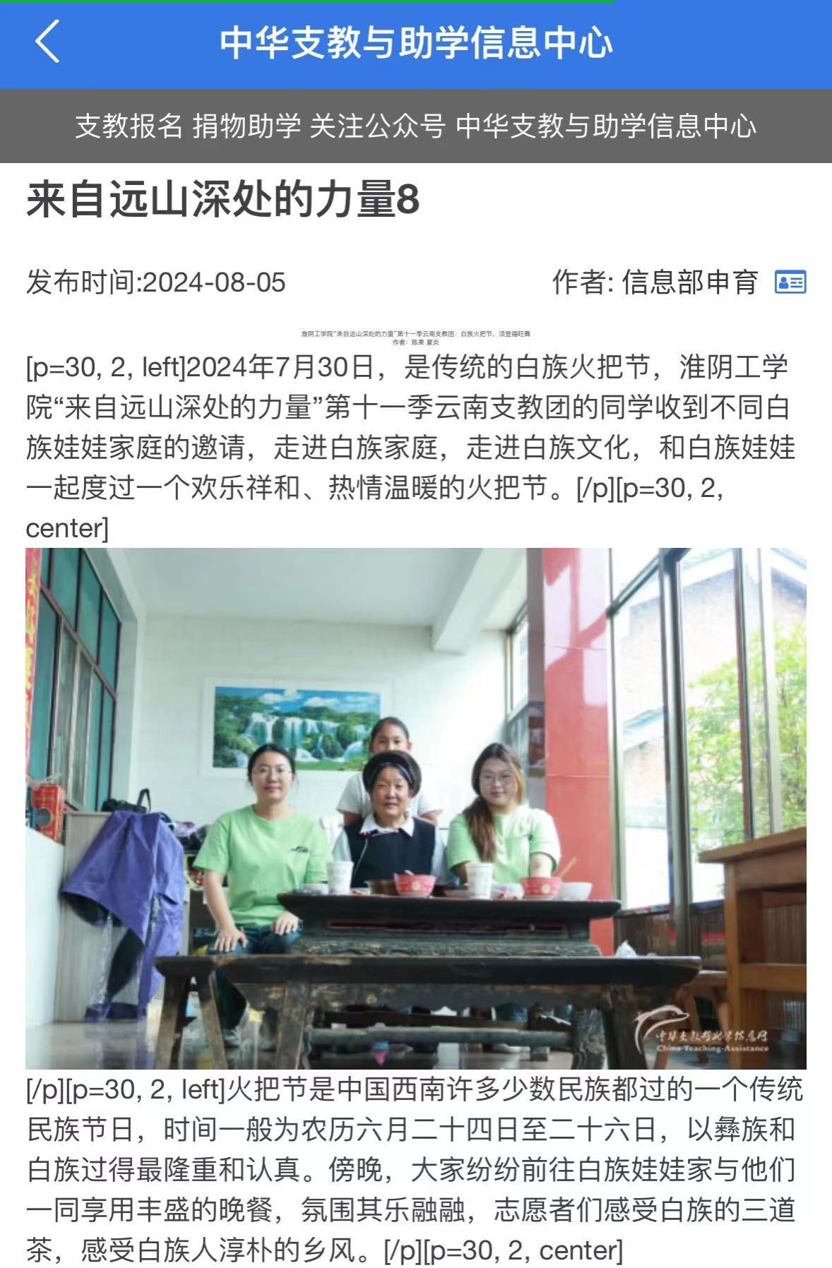 这一天,志愿者们与白族孩子们共同度过了一段难以忘怀的美好时光。他们不仅亲身体验了白族家庭的热情好客,也深深感受到了当地淳朴的民风。这段珍贵的记忆将永远留在支教老员工和白族孩子们的心中,如同那燃烧的火把,点亮了梦想,照亮了现实,激励彼此敢于追梦,勇于逐梦,用学习改变命运,用奋斗点亮未来!