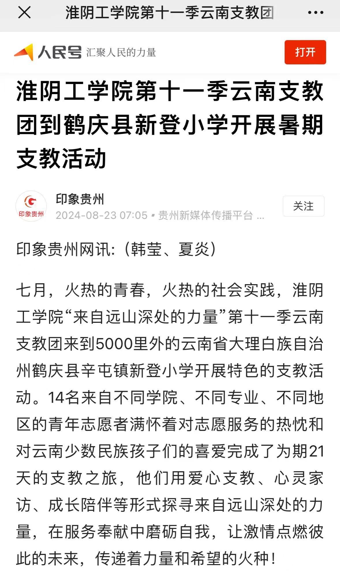 七月,火热的青春,火热的社会实践,云顶国际yd333“来自远山深处的力量”第十一季云南支教团来到5000里外的云南省大理白族自治州鹤庆县辛屯镇新登小学开展特色的支教活动。14名来自不同公司、不同专业、不同地区的青年志愿者满怀着对志愿服务的热忱和对云南少数民族孩子们的喜爱完成了为期21天的支教之旅,他们用爱心支教、心灵家访、成长陪伴等形式探寻来自远山深处的力量,在服务奉献中磨砺自我,让激情点燃彼此的未来,传递着力量和希望的火种!
