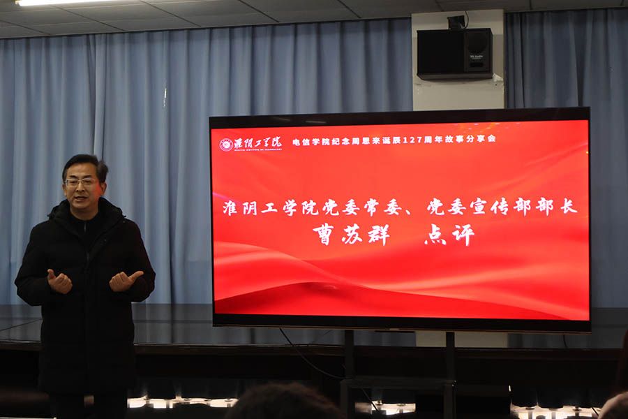 曹苏群部长在点评中盛赞本次活动“以美育德、以情化人”,将思政教育具象为可感可知的艺术符号。他指出,周恩来崇高精神风范与“明德尚学 自强不息”的淮工精神互相照应,他勉励师生将艺术共鸣转化为价值认同,将历史回响转化为现实担当,将追思缅怀转化为奋进动能,把学习成果转化为“强国有我”的自觉行动。