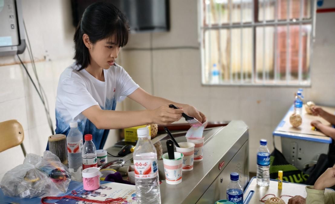 为让孩子们在动手实践中释放创意、触摸文化,支教团成员开设了手工与非遗课程。