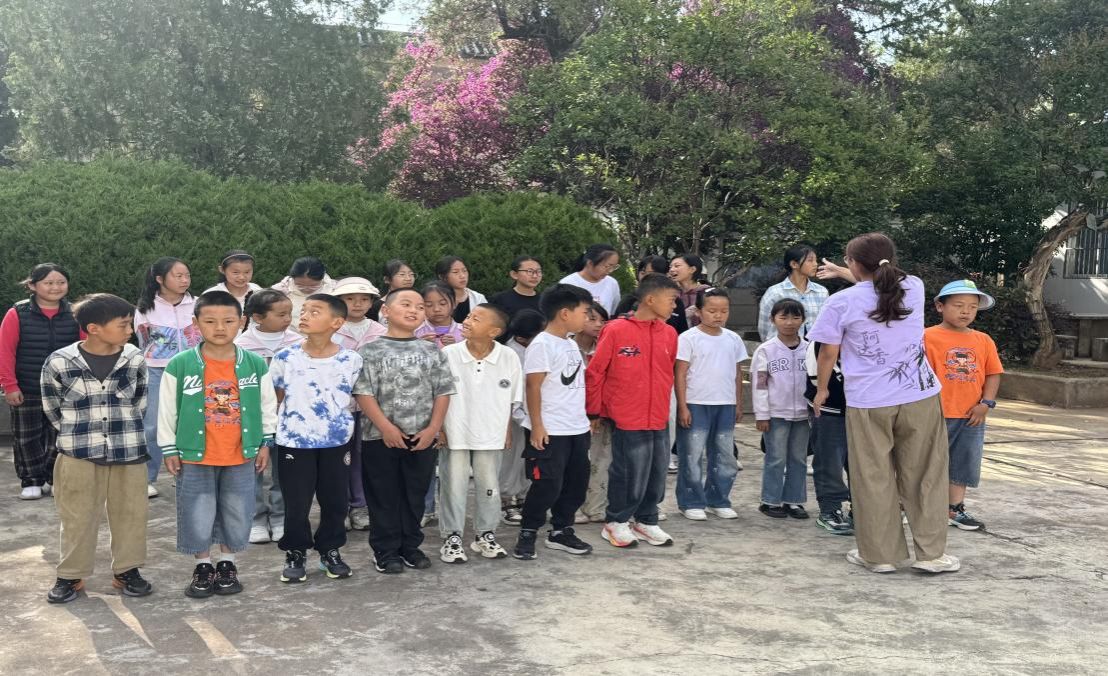 支教团成员设计的“寻旗比赛”,通过规则讲解和提问互动凝聚精神。操场上,严谨热身后,孩子们化身“小勇士”穿梭寻旗,进行智力与体能的比拼。师生同场竞技,欢呼与笑声交织。室内环节进行你画我猜、萝卜蹲、击鼓传花等游戏,在轻松氛围中培养反应与协作。