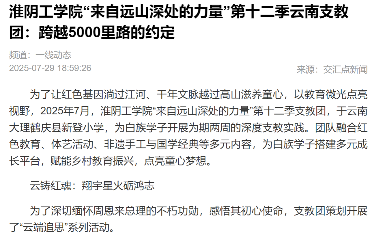 未来,“来自远山深处的力量”支教团将继续步履不停,探索更多元、更深入的教育实践,让爱与智慧持续滋养远山学子的成长,点亮更多童心未来的光芒。