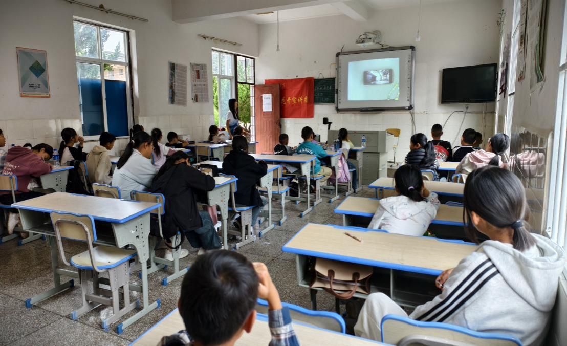 支教团成员开设“国学经典”课堂,带领孩子们诵读经典篇目,分享感悟。
