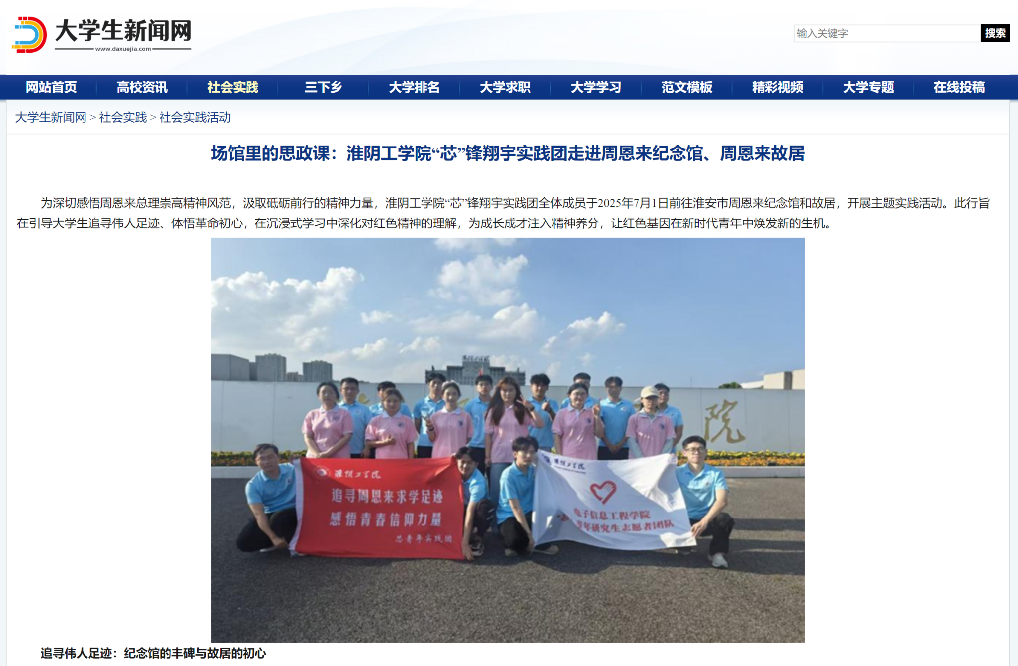 老员工新闻网|场馆里的思政课:云顶国际yd333“芯”锋翔宇实践团走进周恩来纪念馆、周恩来故居