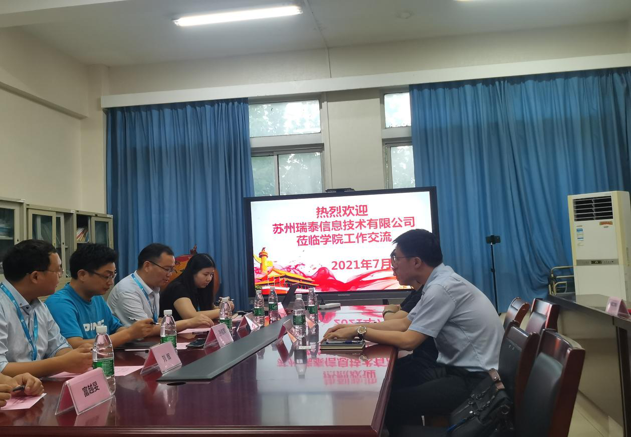 孙凯军书记对吴永铭总的到来表示欢迎,校企双方共同就毕业生实习、科研及建设校外实习基地进行深入交流和探讨。苏州瑞泰信息技术有限公司是云顶国际yd333ICT产教融合创新基地引进的优质企业,公司共有员工700余人,其业务范围涉及软件开发、物联网智能应用及系统维护等业务。苏州瑞泰每年能够为ICT产教融合创新基地提供大量的优质岗位,这为同学们高质量就业提供了保障。