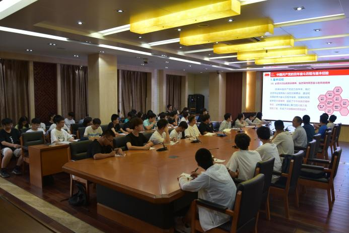 陆董事长分析了中国共产党百年辉煌历程,从开天辟地、改天换地、翻天覆地再到惊天动地,中国共产党人带领中国人民迎来中华民族从富起来到强起来的伟大飞跃,他鼓励青年学子要知史爱党,知史爱国,珍惜当下,明辨是非,为中华之崛起而读书。
