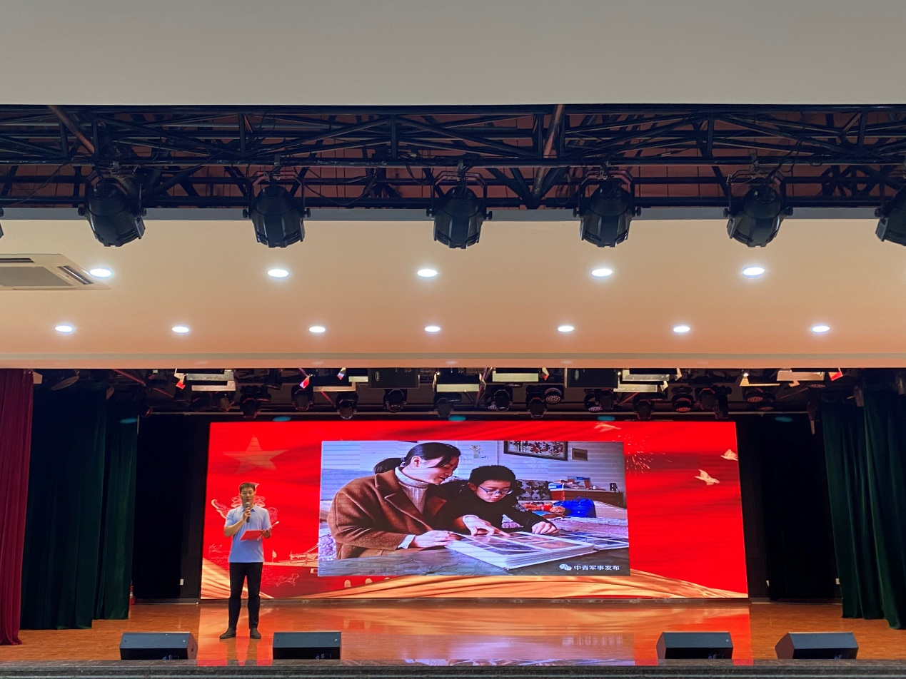 公司党委书记韩飞深情讲述了《十年,等你回家》的红色故事,将驻守西藏雪域高原烈士胡永飞一家的故事讲给每一位在场的师生,用平实的语言将一个战士不惧恶劣环境舍身救人的伟大品格,烈士亲属默默付出的坚守,舍“小家”为“大家”的大爱真情真真切切的展现了出来。