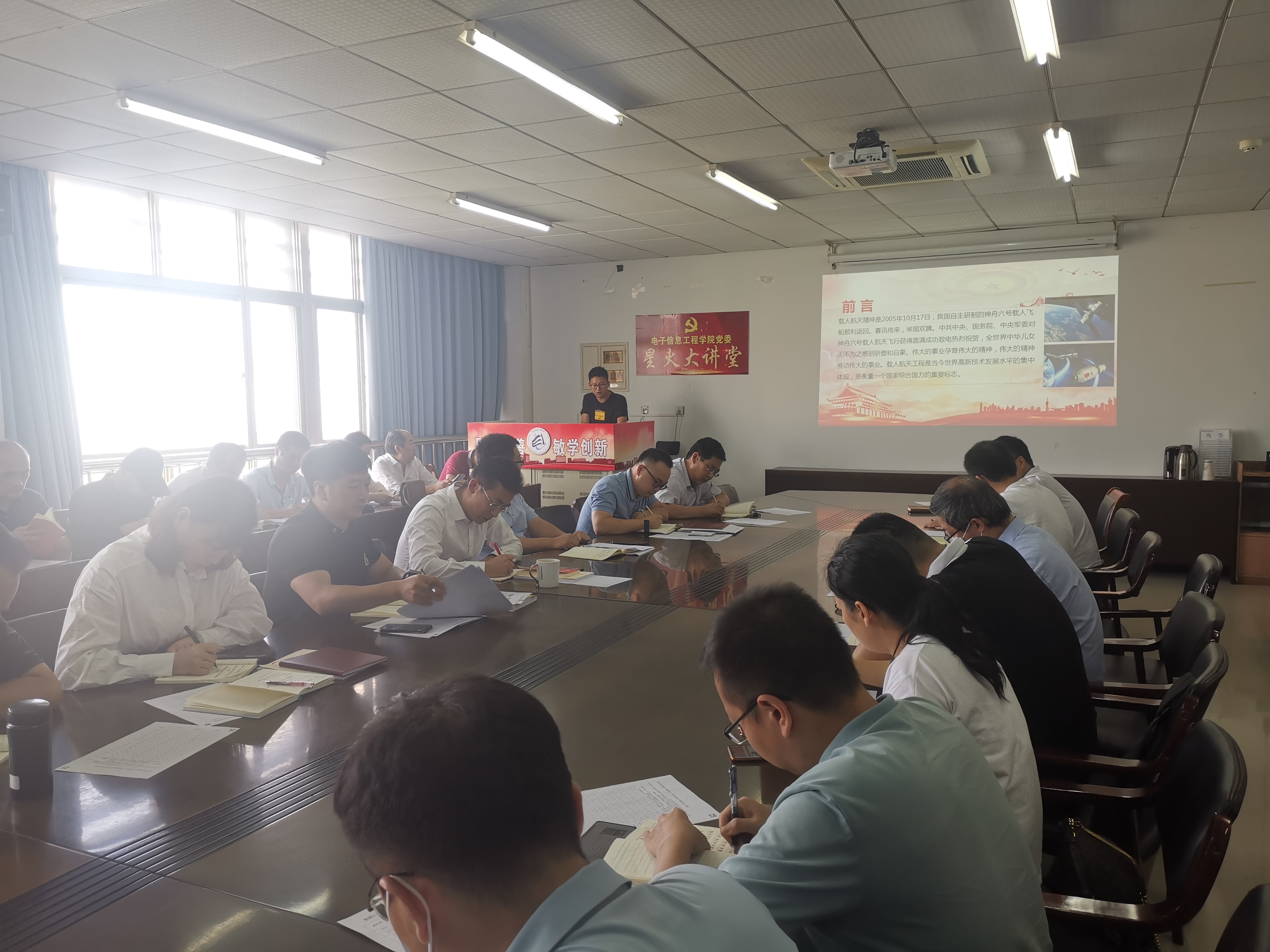 卞海溢博士围绕从载人航天发展过程、“航天精神”的主要内涵、“航天精神”的影响等方面,详细介绍了我国的载人航天事业从无到有,从弱到强的艰辛历程,鼓励大家在新征程上传承优良传统,发扬特别能吃苦、特别能战斗、特别能攻关、特别能奉献的载人航天精神。