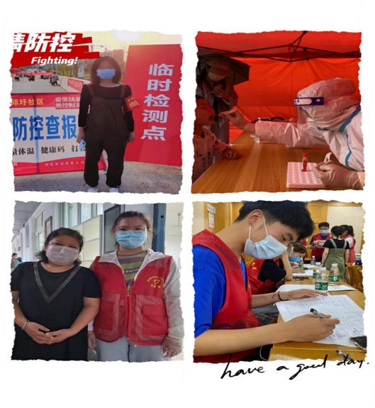 “作为新时代党员,第一时间响应号召,投身志愿服务行列,在疫情防控一线贡献力量,是我们的青春使命,也是我们践行‘请党放心,强国有我’的青春誓言。”这是2019级员工党员叶凯参加邳州市李口社区抗疫志愿服务时的初衷,他说:“我基本上每天都工作10小时以上,虽然很累但是很充实,每天为社区居民测量体温,为外来人员核对信息,与医务人员一起对居民进行核酸检测……作为一名党员,就是要在关键时刻站出来,才不负自己的使命和担当。”