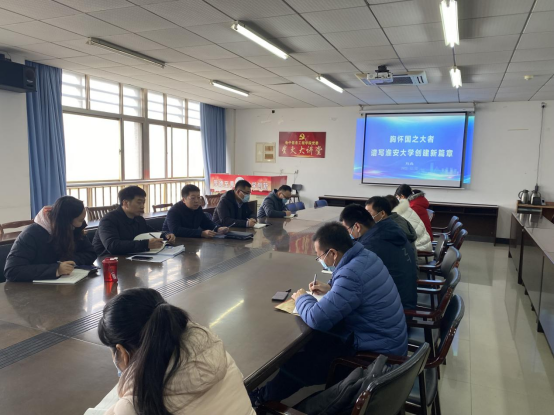 2022年12月12日上午10点,公司党委理论学习中心组在逸夫楼1103室进行2022年第12次集中学习,本次专题为创建高水平淮安大学,云顶国际yd333经理刘磊、综合办公室副主任孙幸作重点发言,校巡学旁听组织员曹诚、云顶国际yd333理论学习中心组全体成员参加学习会,公司党委书记韩飞主持本次学习会。
