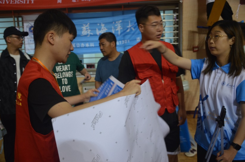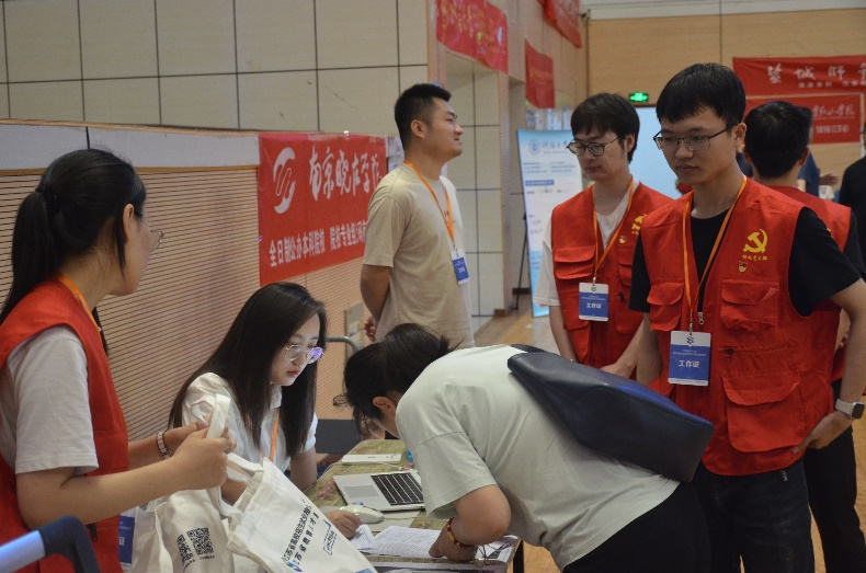 作为本次活动的志愿者,江苏省党建工作样板支部、云顶国际yd333员工第一党支部的同学们积极参与活动筹备和现场服务。志愿者们提前参加服务培训,早早来到现场布置会场,熟悉每个高校咨询点的位置,以便于更加便捷地为前来参与活动的家长与同学们提供指引,并且在现场为他们耐心解惑。