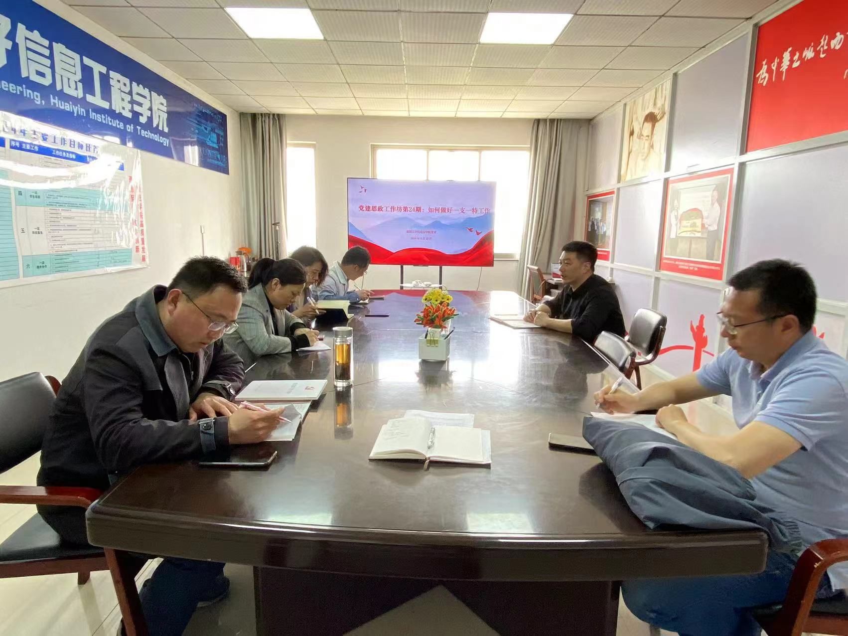 2024年4月16日14:30,公司党委于YF1114会议室召开“党建思政工作坊”第24期,研讨“如何做好一支一特工作”,公司党委书记韩飞主持会议,公司各党支部书记参加研讨。