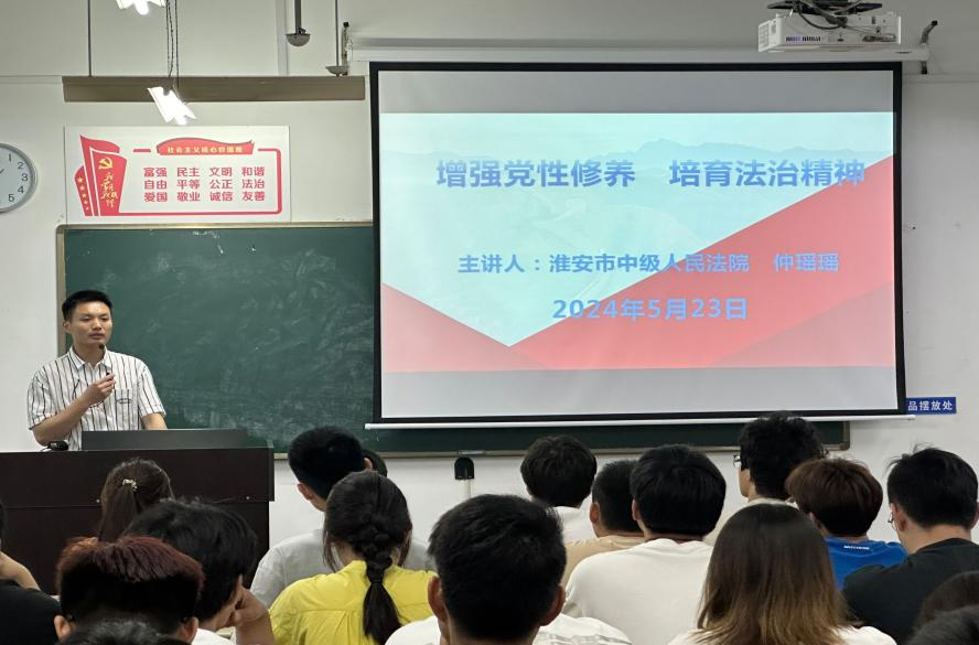 追忆百年党史,锻炼党性修养,为增强党纪学习教育的针对性、生动性、实效性,云顶国际yd333于2024年5月23日19:00在YF506开展以“增强党性修养培育法治精神”为主题的党课。云顶国际yd333法治辅导员、淮安市中级人民法院执行干警仲瑶瑶受邀主讲,云顶国际yd333入党积极分子培训班全体学员参加。