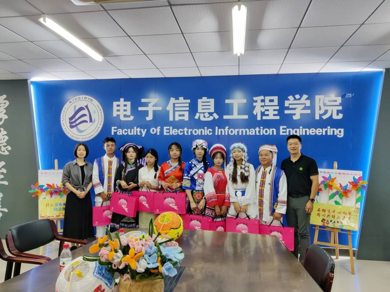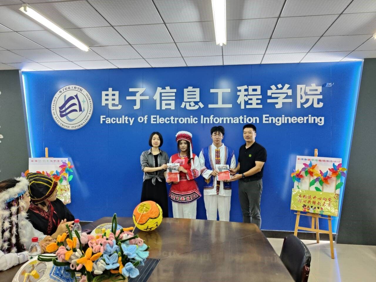 韩飞和田桂芬一起为少数民族新生开展结对仪式并赠送书籍。公司党委书记韩飞谈到,公司党委持续开展中华民族共同体意识教育,一是“远山支教情”,以云南支教书写西南边陲民族村小的青春故事;二是“红石榴宣传”,以讲好身边民族团结故事传递中华民族共同体意识的正能量;三是“翔宇共奋进”,以奋进青春践行“报效祖国、服务社会、感恩父母、成就自我”的淮工篇章。