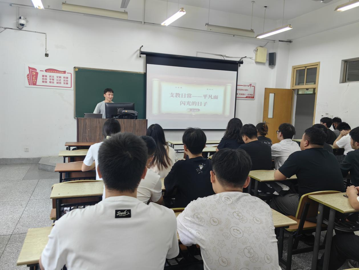兼职辅导员朱梦笑围绕西部计划政策展开详细解读,从项目背景、服务内容、选拔流程到保障措施,系统介绍了这一引导青年投身基层建设的重要平台。她指出,西部计划是毕业生将个人成长与兴边富民、稳边固边相结合的重要途径,既是响应国家号召的使命担当,也是实现人生价值的宝贵机遇。结合毕业生离校教育,朱梦笑强调,支部作为全国党建工作样板支部,始终将“为党育人、为国育才”贯穿培养全过程,希望毕业生党员牢记党员身份,以回信精神为指引,主动选择到基层一线、边疆地区建功立业,在中国式现代化建设中贡献电信学子的智慧与力量。